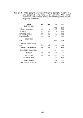 Tab. 3.4.21 - Indici semplici relativi ai food item di esemplari maschili di C.