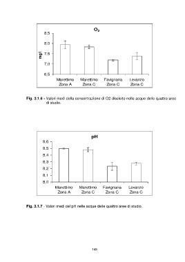 Fig. 3.1.7 - Valori medi del pH nelle acque delle quattro aree di studio.