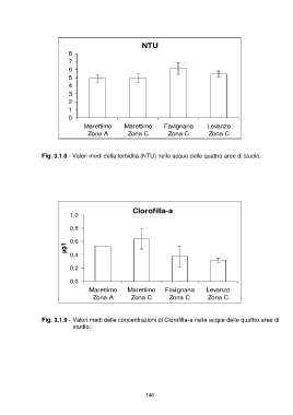 Fig. 3.1.8 - Valori medi della torbidità (NTU) nelle acque delle quattro aree di studio.