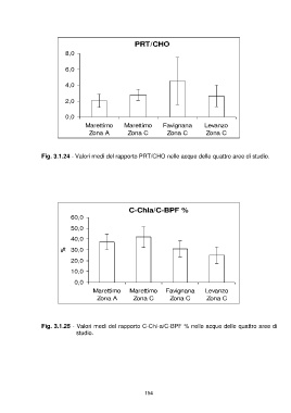 Fig. 3.1.24 - Valori medi del rapporto PRT/CHO nelle acque delle quattro aree di studio.