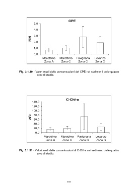 Fig. 3.1.30 - Valori medi delle concentrazioni dei CPE nei sedimenti delle quattro