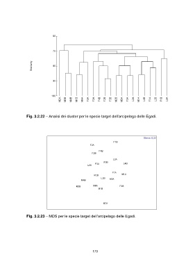 Fig. 3.2.22 – Analisi dei cluster per le specie target dell’arcipelago delle Egadi. Fig. 3.2.23 – MDS per le specie target dell’arcipelago delle Egadi. 173