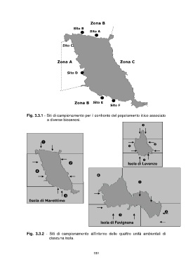Fig. 3.3.2 - Siti di campionamento all’interno delle quattro unità ambientali di