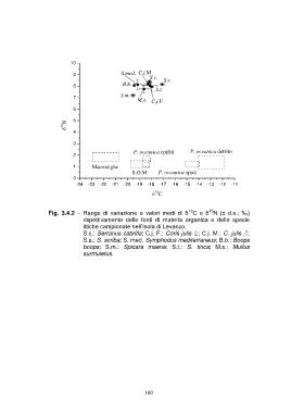 Fig. 3.4.2 – Range di variazione e valori medi di δ13C e δ15N (± d.s.; ‰)