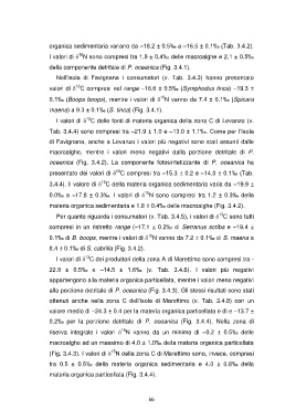 organica sedimentaria variano da –18.2 ± 0.5‰ a –16.5 ± 0.1‰ (Tab. 3.4.2).