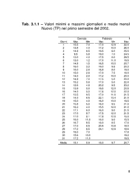 Tab. 3.1.1 – Valori minimi e massimi giornalieri e medie mensil