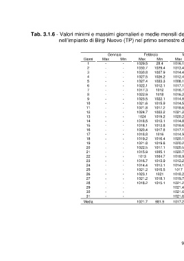 Tab. 3.1.6 - Valori minimi e massimi giornalieri e medie mensili de
