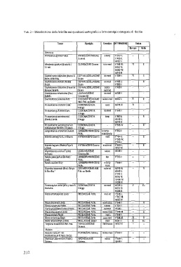 Tab. 2- Distribuzione delle brio!ite nei quadranti cartogrofici e loro corotipi e categorie di rischio