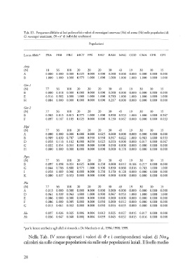 Tab. III- Frequenze alleliche ai !aci polimorfìci e valori di eterozigosi osservata (Ho) ed attesa (He) nelle popolazioni di