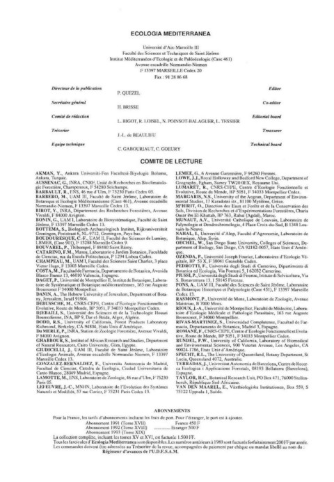 Tous Ics fasciculcs d'Ecol()j(ia Mcòilcrrancasont disponihlcs. Lcs numéros antéricurs à 1989 son1 facturés forfaitairement200FFparannéc.