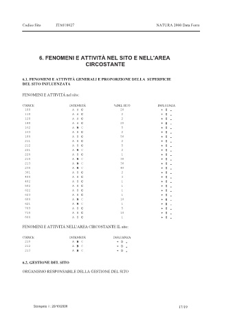 6. FENOMENI E ATTIVITÀ NEL SITO E NELL'AREA