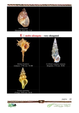 Tricolia tenuis (Michaud, 1829) mm 5-10 E : molto allungata - very elongated Bolinus brandaris Cerithium vulgatum vulgatum (Linnaeus, 1758) mm 70-100 Bruguière, 1792 mm 50-80 Fusinus pulchellus (Philippi, 1844) mm 20-40 pagina 15