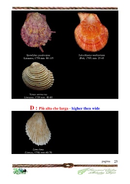 Spondylus gaederopus Talochlamys multistriata Linnaeus, 1758 mm 80-135 (Poli, 1795) mm 25-45 Venus verrucosa Linnaeus, 1758 mm 40-60 D : Più alta che larga - higher then wide Lima lima (Linneo, 1758) mm 40-70 pagina 25