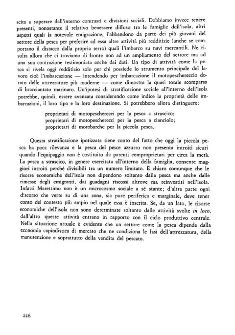di bracciantato marinaro. Un'ipotesi di stratificazione sociale all'interno dell'isola