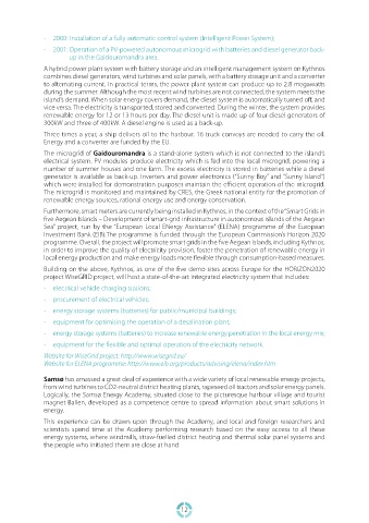 programme. Overall, the project will promote smart grids in the five Aegean islands, including Kythnos,
