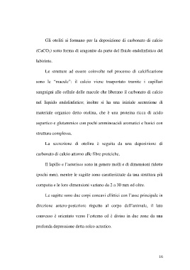 (CaCO3) sotto forma di aragonite da parte del fluido endolinfatico del