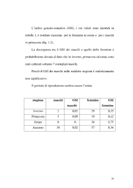 tabella 1, è risultato massimo per le femmine in estate e per i maschi