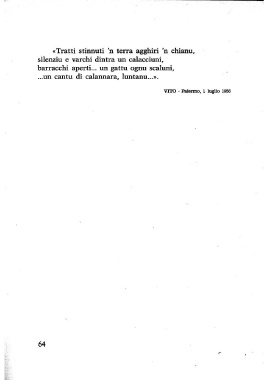 ,.. «Tratti stinnuti 'n terra agghiri 'n chianu, silenziu e varchi dintra un calacciuni, barracchi aperti... un gattu ognu scaluni, ...un cantu di calannara, luntanu...». VITO • Palermo, l luglio 1956 64