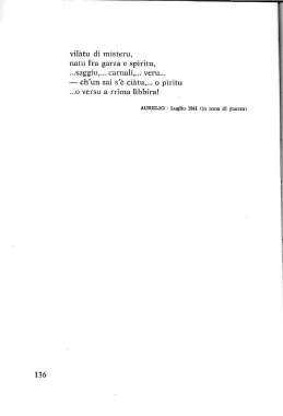vilàtu di misteru, natu fra garza e spìritu, ...saggiu,... carnali,... veru... -ch'un sai s'è ciàtu,... o pìritu ...o versu a rrima lìbbira! AURELIO - Luglio 1941 (in zona di guerra) 136