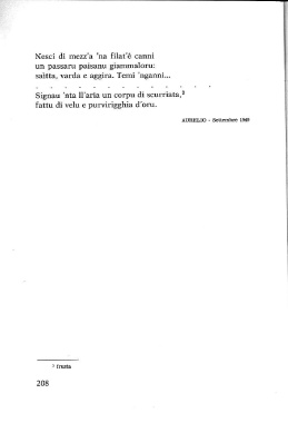 Nesci di mezz'a 'na filat'é canni un passaru paisanu giammaloru: saìtta, varda e aggira. Temi 'nganni... Signau 'nta ll'aria un corpu di scurriata,3 fattu di velu e purvirigghia d'oru. AURELIO · Settembre 1949 J frusta 208