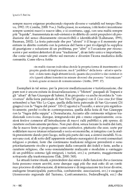 Bauman, 2002). La festa patronale che per “alcuni” è il luogo e il momento per
