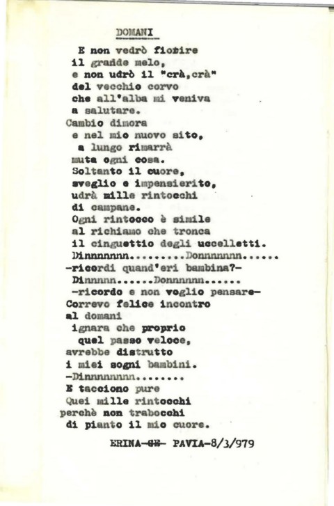 DO fl E non vedrb ~io ir i.l lo, e AGA uctrl> il. • crk, crà" del v cchio eo o l l • l · veniva a c l l etti. 1 ,_ - ricordo non yoglio pensare- 1'elio 1 contro bini • •• ••••• • ll.e rintoocld aoa tr cohi o il o or • ERIKA-a- PAYIA-8/3/979