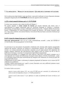 7. LE OPERAZIONI : MODALITÀ DI SELEZIONE E QUADRO DELLE RISORSE FINANZIARIE