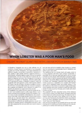 soffritto di cipolla. concentrato di pomodoro, mandorle tri- The traditional dish is a /obster broth with pasta, which is