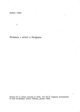 FRANCA TORRE Pirriatura e pirreri a Favignana Est.ratto da LA cultura matuiale in Sicilia. Ani del II Congresso intetoazionale di studi antropologici siciliani (Palermo, gennaio 1980).