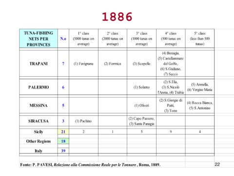 Fonte: P. PAVESI, Relazione alla Commissione Reale per le Tonnare, Roma, 1889. 22