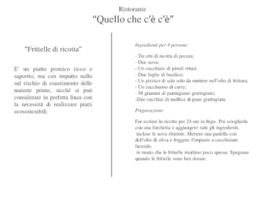 E’ un piatto proteico ricco e - Tre etti di ricotta di pecora;