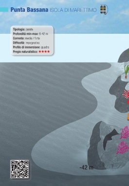 Punta Bassana ISOLA DI MARETTIMO Tipologia: parete Profondità min-max: 6-42 m Corrente: media / forte Difficoltà: impegnativa Profilo di immersione: quadra Pregio naturalistico: -42 m