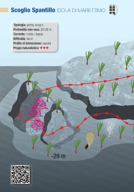 Scoglio Spantillo ISOLA DI MARETTIMO Tipologia: grotta, scoglio Profondità min-max: 20-29 m Corrente: media / bassa Difficoltà: facile Profilo di immersione: quadra Pregio naturalistico: -29 m