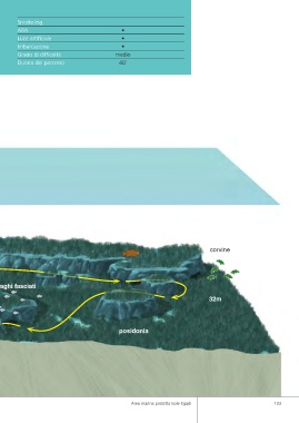 Snorkeling ARA • Luce artificiale • Imbarcazione • Grado di difficoltà medio Durata del percorso 40’ corvine raghi fasciati 32m posidonia Area marina protetta Isole Egadi 103