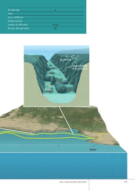 Snorkeling • ARA Luce artificiale Imbarcazione Grado di difficoltà basso Durata del percorso 40’ mormore foglie morte di posidonia grotta triglie 300m Area marina protetta Isole Egadi 119