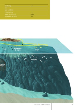 Snorkeling • ARA Luce artificiale Imbarcazione • Grado di difficoltà medio Durata del percorso 30’ spaghetto ricci di mare salpe saraghi repora ncione Area marina protetta Isole Egadi 131