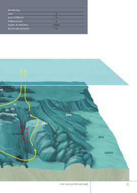 Snorkeling ARA • Luce artificiale • Imbarcazione • Grado di difficoltà medio Durata del percorso 30’ nia 23m 30m 27m gorgonie 42m sabbia Area marina protetta Isole Egadi 61