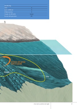 Snorkeling ARA • Luce artificiale • Imbarcazione • Grado di difficoltà basso Durata del percorso 45’ accesso alla grotta sotto la parete franata 17m Area marina protetta Isole Egadi 97