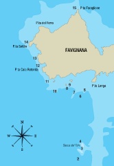 15 P.ta Faraglione P.ta del Ferro P.ta S. Nicola 14 P.ta Sottile FAVIGNANA 13 P.ta Calarossa 12 P.ta Cala Rotonda 11 9 P.ta Longa 8 10 7 5 1 6 P.ta Marsala P.ta Fanfalo 4 Secca del Toro 3 2