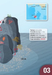 P.ta Longa I.to Preveto P.ta Marsala P.ta Fanfalo Secca del Toro Tipologia: secca, parete Profondità min-max: 8 - 33 m Corrente: talvolta forte Difficoltà: media / impegnativa Profilo di immersione: multilivello Pregio naturalistico: -33 m 03